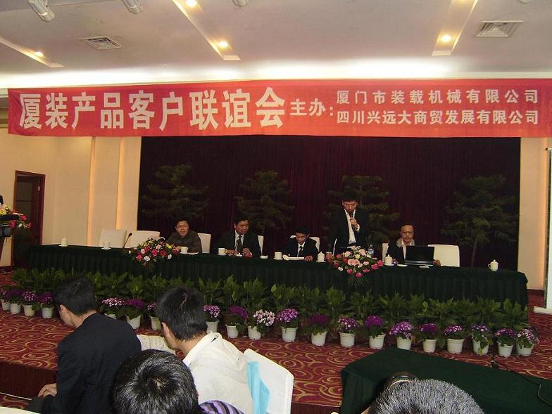 2009年3月21日上午,廈門市裝載機(jī)有限公司及四川興遠(yuǎn)大商貿(mào)發(fā)展有限公司共同舉辦的“廈裝機(jī)械客戶聯(lián)誼會(huì)”在什邡市長(zhǎng)江賓館舉行。廈門市裝載機(jī)有限公司副總經(jīng)理王曉忠、技術(shù)中心副主任王理和什邡市工商聯(lián)主席鄧家宜出席會(huì)議。