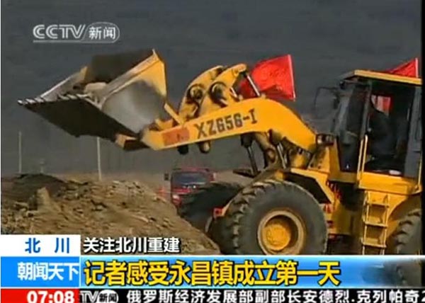央視播報(bào)---廈裝XZ656-Ⅰ裝載機(jī)援建新北川 |